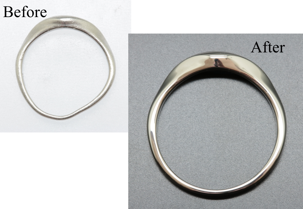 お客様にお持ちいただいた指輪は変形して、傷も付いていました。